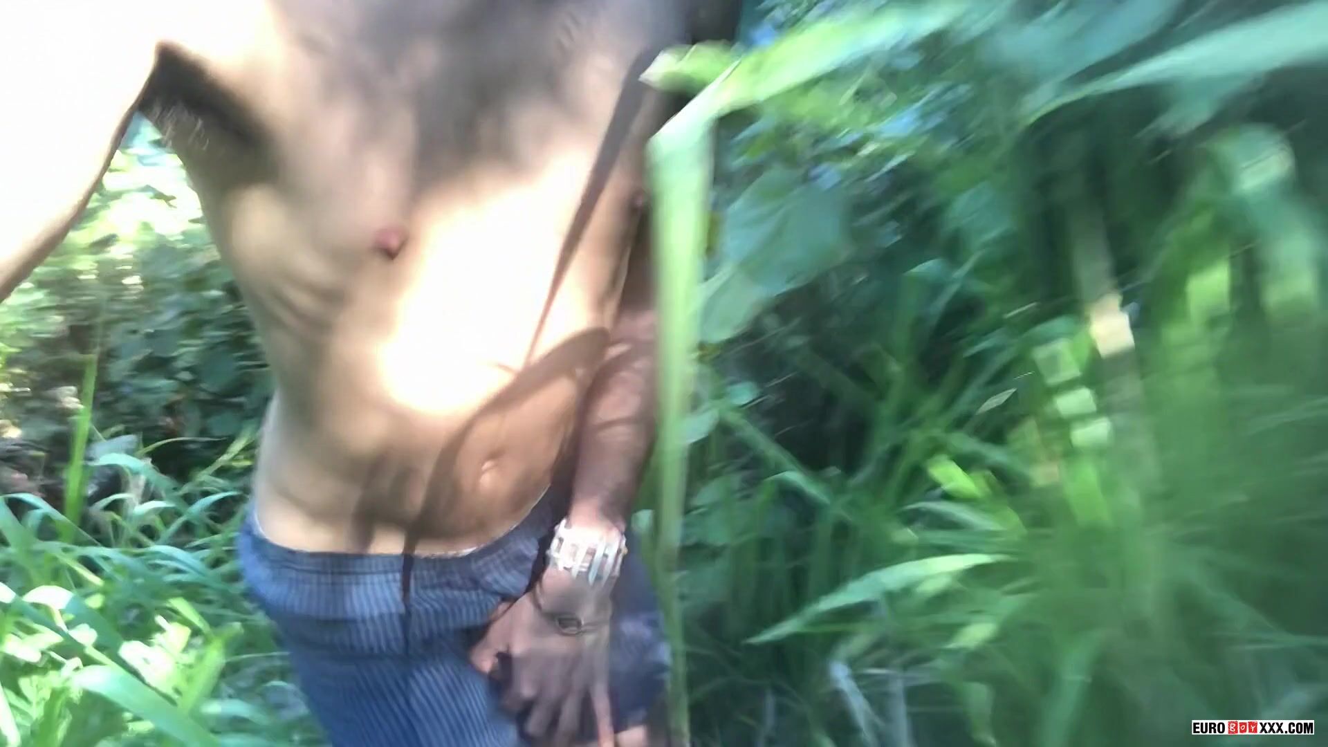 Gorgeous Maxxie heads outside to jack his dick and play with his hole.