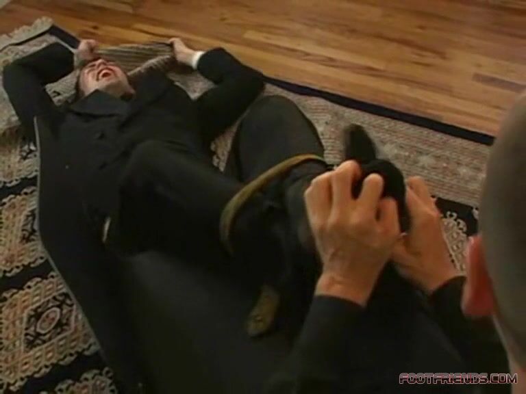 Ridgeway gets intense tickle punishment for slacking off on the job. He's very ticklish and responds to light touch, tickling through socks, even feathers. But the electric massager pushes him over the edge. 1. Ridgeway gets tied up and his torture explained (1 min) 2. The tickling begins: Hands, sheer socks (2mins) 3. Hands, sheer socks (2 mins) 4. Hands, sheer socks (2 mins) 5. More hands, sheer socks. Hair brush introduced (2 mins) 6. Hair brush, then socks came off (2 mins) 7. Barefoot, feathers introduced (2 mins) 8. Feathers drive him wild (2 mins) 9. Feathers and toes, then brush (1 min) 10. Brush (2 mins) 11. Electric massager (2 mins) 12. Electric massager (2 mins)