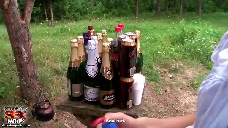 The lucky guy is having the real fun today! He is lying on the ground under the passionate bodies of several boozed girls whose skilful lips and hands shamelessly touch every inch of the victim’s skin.