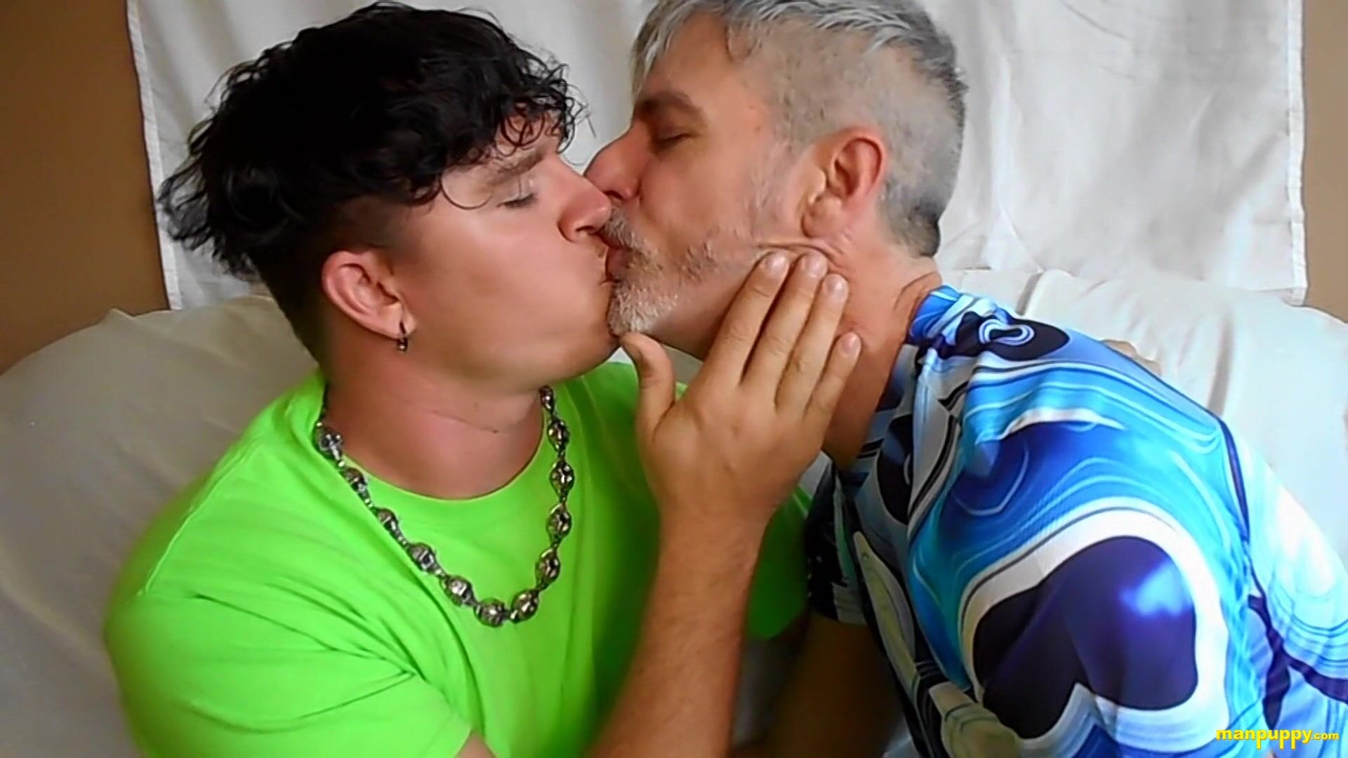 Daddy Richard and sweet young twink Leo enjoy a good long make out session.