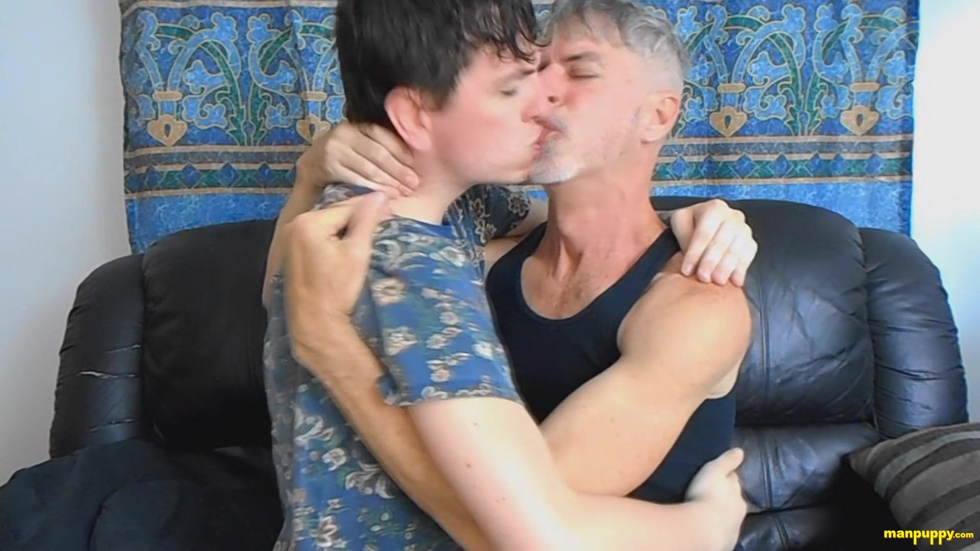 Sexy young new arrival Christian gets a great welcome in a hot gay kissing session with Richard!