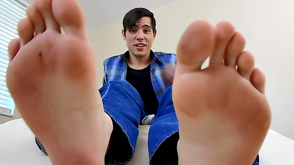 Giant boy Aiden gives you a foot job and gets sticky with your hot load!