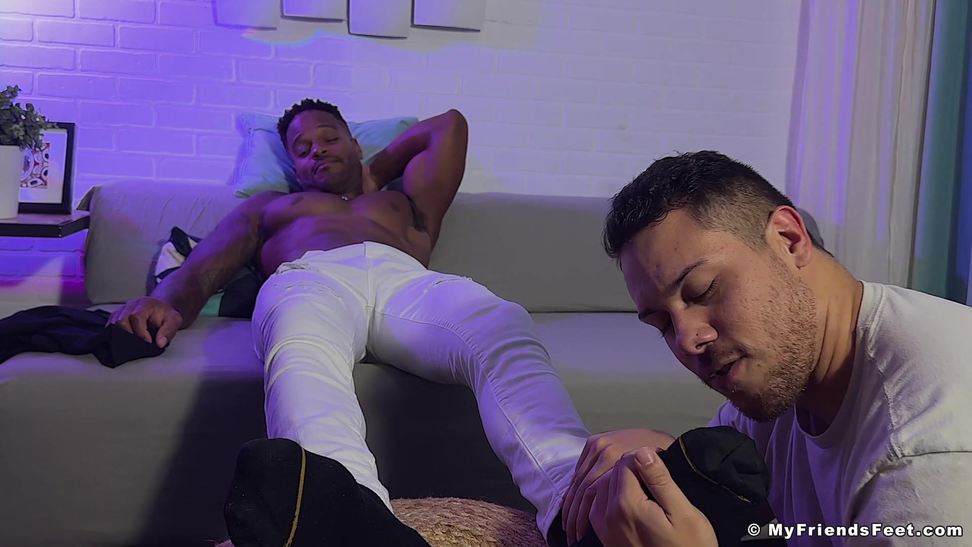Kevin had an incredibly busy day at the bar and was on his feet all night. Dan offers to give his buddy a foot massage to help him feel better. After getting more comfortable by taking his shirt off, Kevin lets Dan worship his stunning size 12 feet! Something tells me that Kevin liked it enough to allow Dan to do this on a more regular basis.
