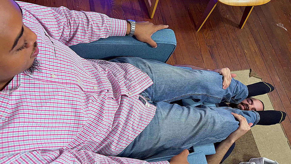 Andre has a new recliner with some pretty amazing features; back massage, heat, and...foot worshiping? One press of the button and indeed, his massive size 20 feet are in for an experience from a magic recliner foot genie!