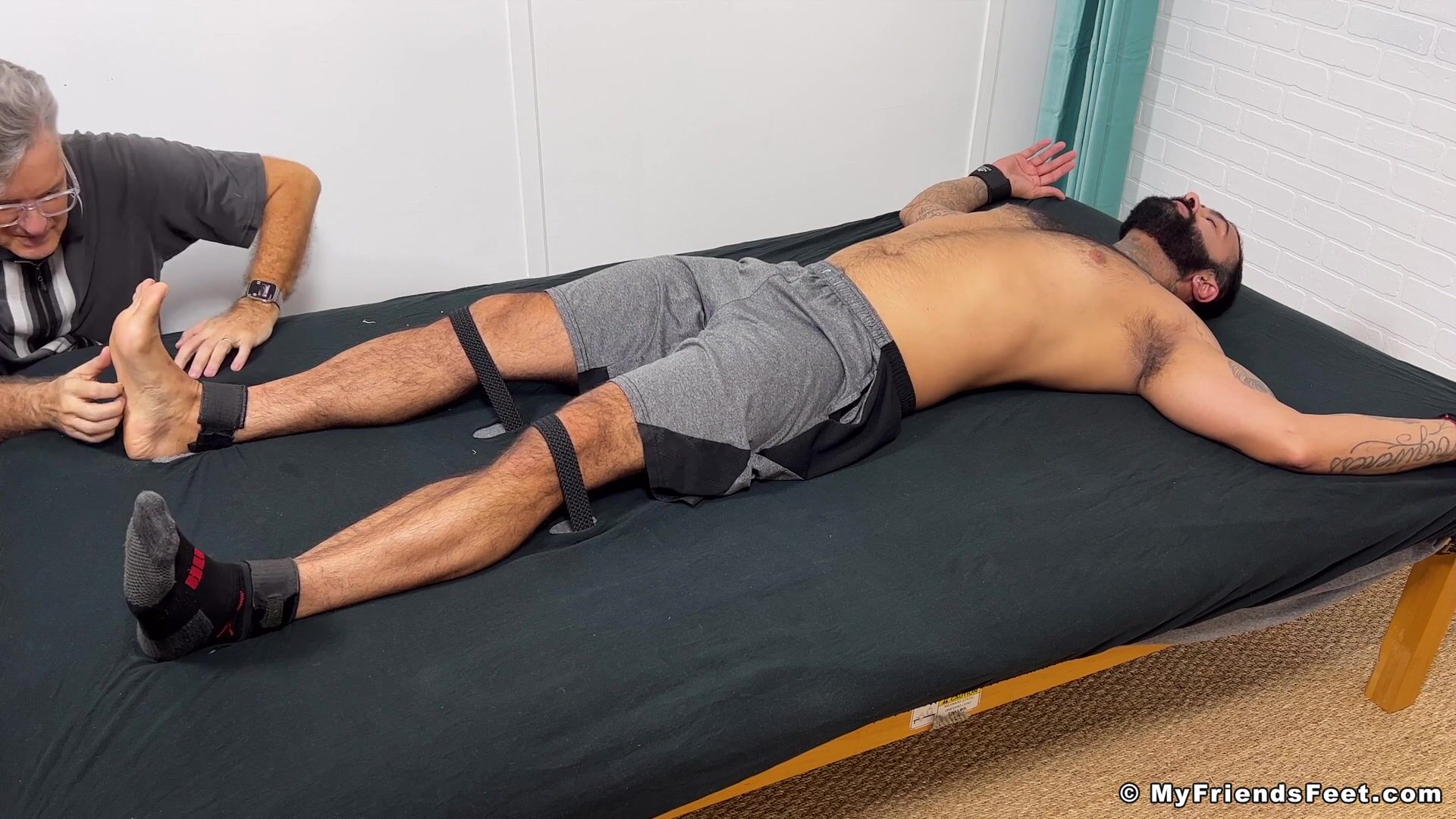 I had the pleasure of tying Rikk down on the tickling table. Although I started out gently by tickling those wiggling feet through his socks, The tickling became more intense as I slowly removed each sock. When the electric toothbrushes made an appearance, he couldn't stop squirming. When they found their way up to his neck, I knew I had found the sweet spot.
