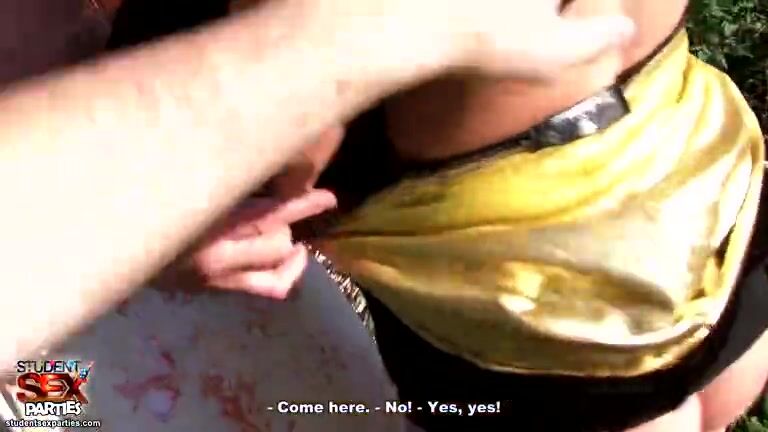 It’s really boring to wait for shashlyk when everybody is already drunk and marry and babe wastes no time on just chatting and retires with two guys in the bushes swallowing the hard cocks!