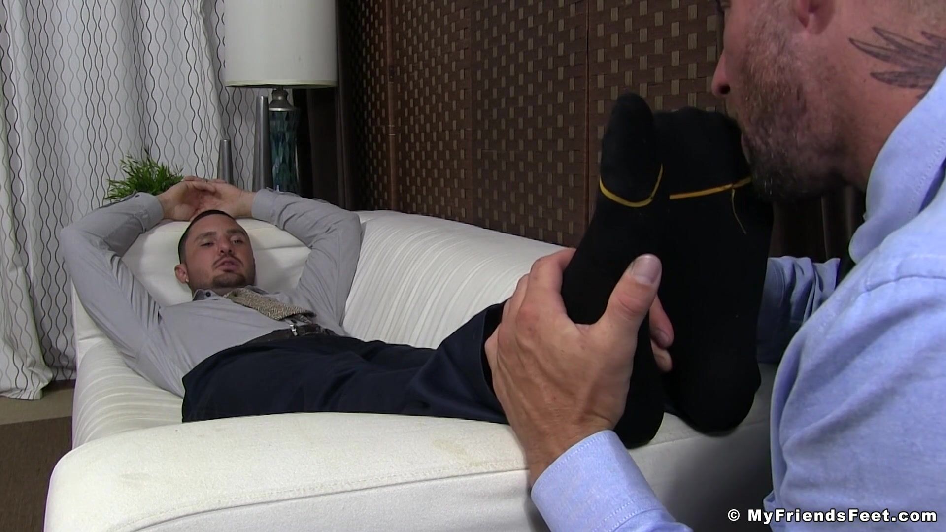 Leo is struggling to finish a report that his boss assigned to him. In his frustration he imagined if he could make his boss pamper him. He'd be laying the couch with his feet up while his boss Ray massaged his feet. And not only massaged, but he would make Ray sniff his socks and worship his feet after a hard day at work. Ray appears and is ready to fulfill Leo's foot worship fantasy by licking his toes and sniffing his feet - something he never though he would see his boss do. And he got a big raise - something else he never thought his boss would do.