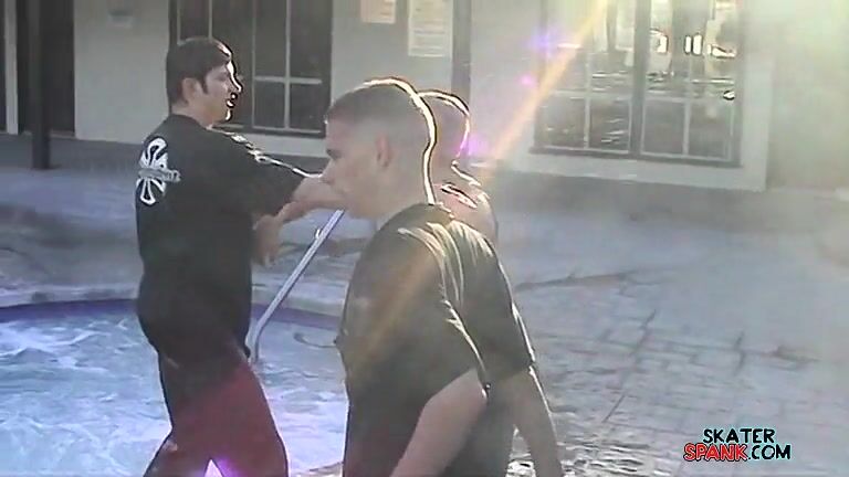 Some of the boys of Skater Spank hang out by the pool and get playful!