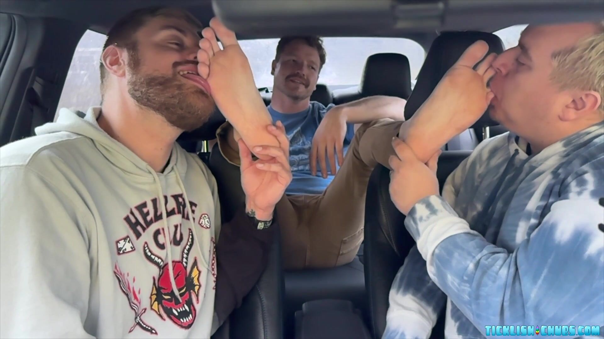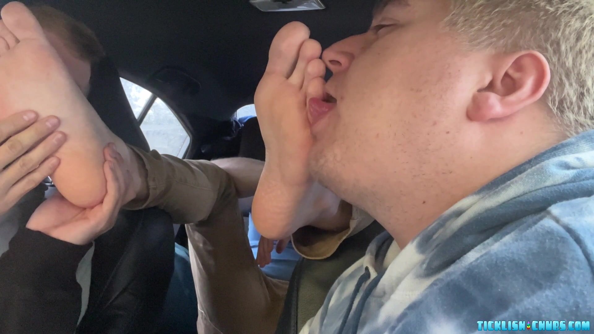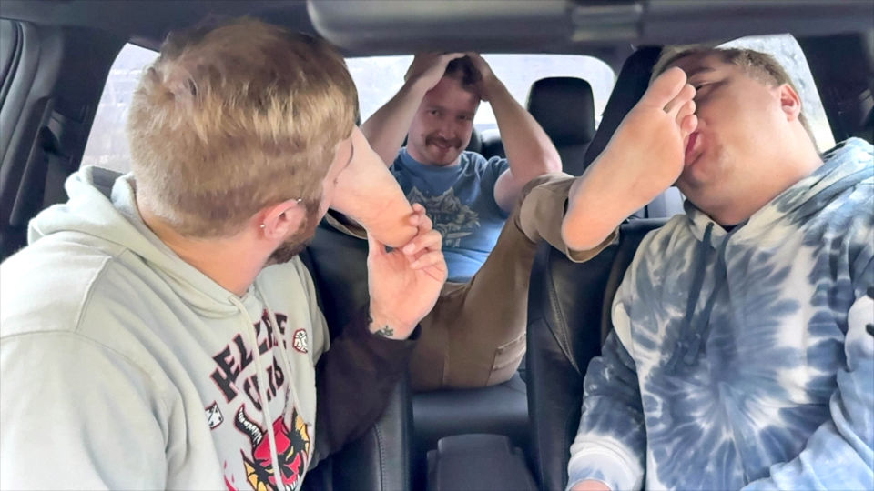 Loborud needed a ride to the airport after all of our fun. He was actually looking forward to riding with Snyft and being able to have his feet worshiped and tickled as payment for the ride. Ryder and I waste no time and worship and tickle those feet. We even reach down to tickle his inner thighs for some extra laughter. Always a pleasure to have you Loborud! Another 5 tongue review!