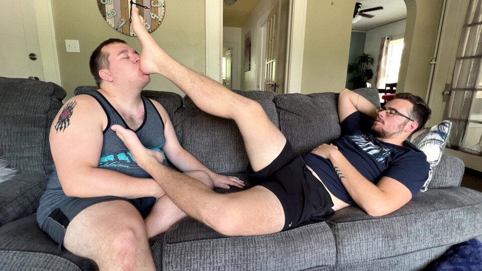 Sexy CDubs gets a great foot worshiping from lucky master Matt on the couch.