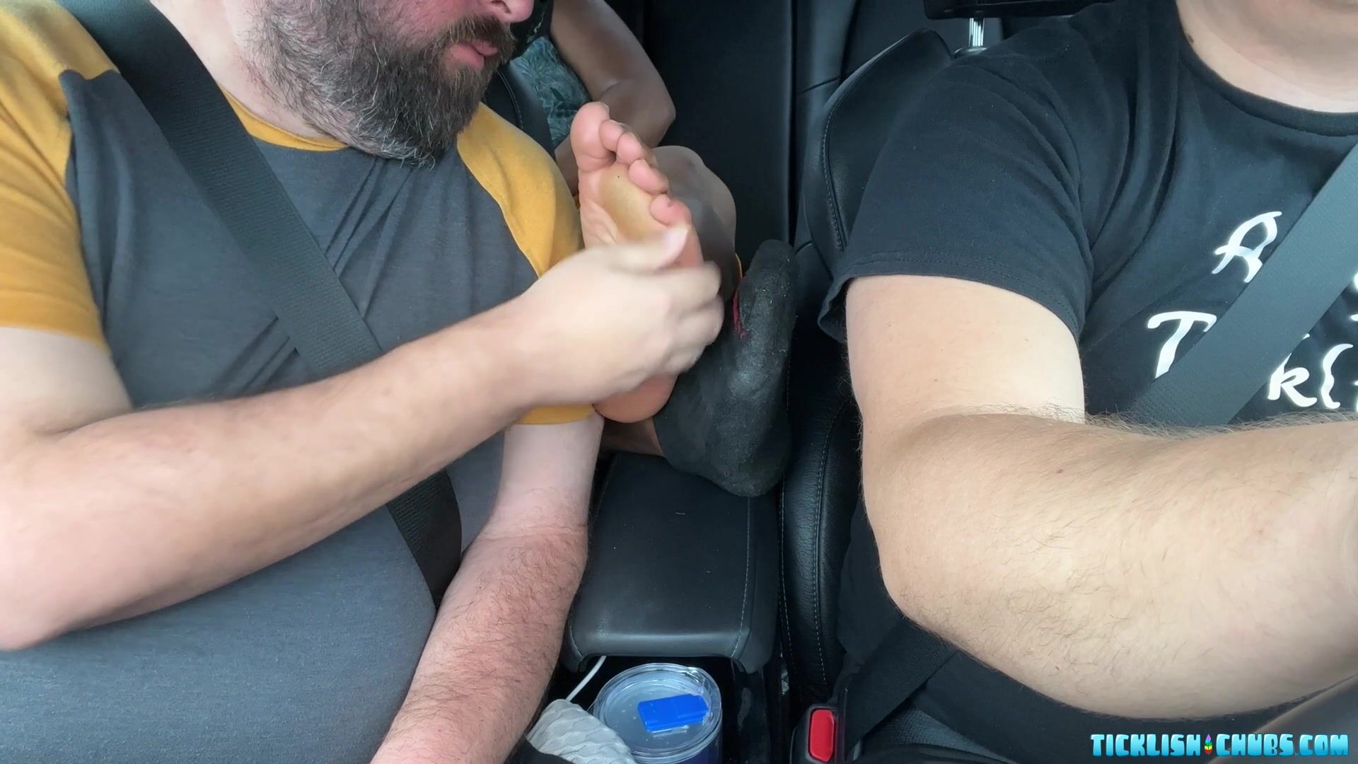 Welcome to Snyft! The car service where you don't pay with cash, but with your feet! Fabio had an hour long drive back to his place and was short on cash so gave us a call! Nemo and myself were more than happy to have Fabio's feet sit on the center console! Nemo takes the opportunity to worship and tickle Fabio's incredibly meaty soles with his tongue and fingers!