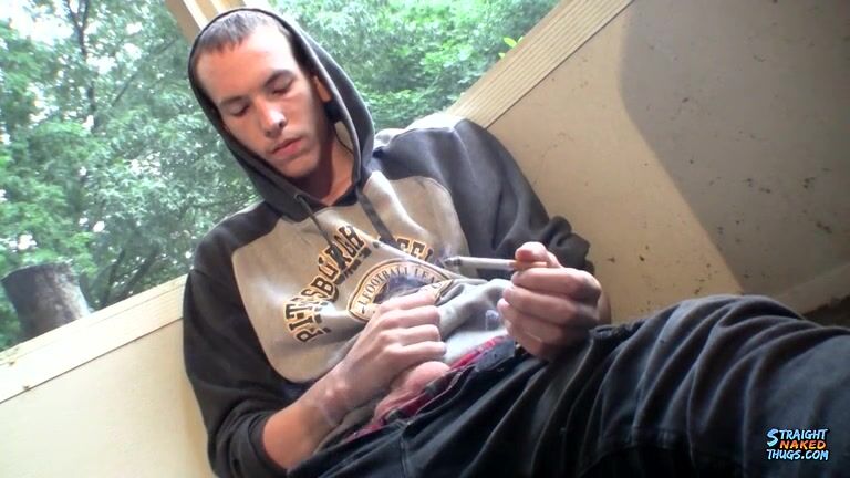 Jake is enjoying a smoke by the window when his attention turns to his big dick