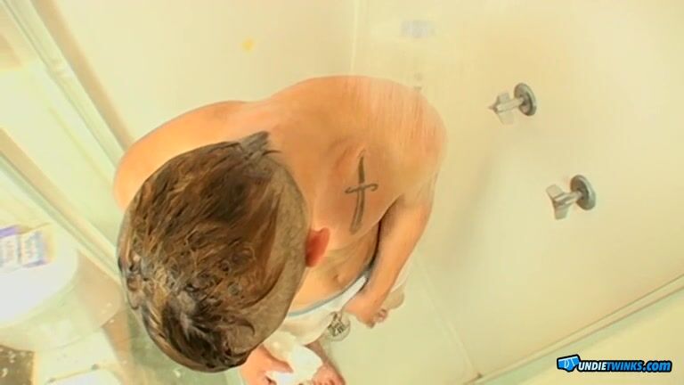 HOT skater twink Boomer decides to give us an undie show! Watch him strip down to his white boxerbriefs and take a long hot steamy shower soakin his undies and then jackin for the camera!