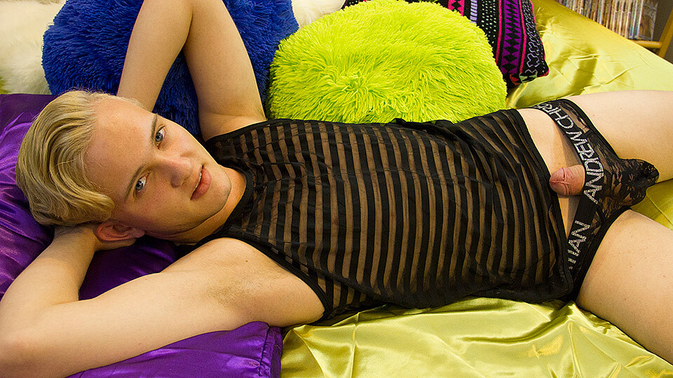 Gorgeous blond boy Oliver has a lot of cum in his shaved cock, the dildo will help him unload it!