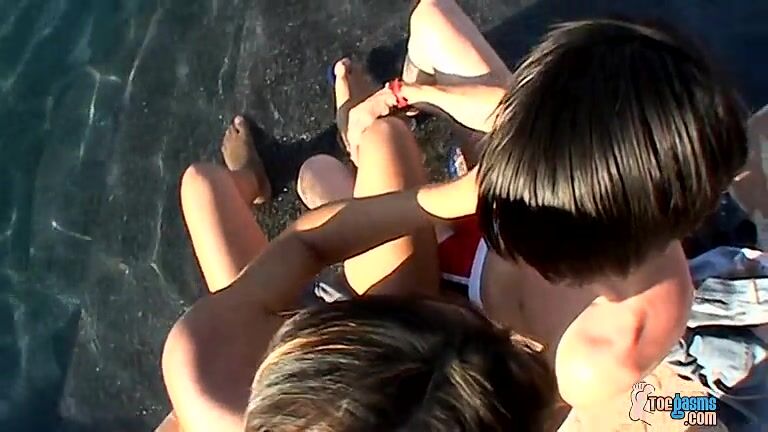 The evening sun beats down as two twink boys share foot worship fun in the pool