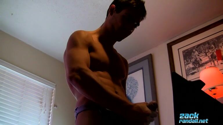 Zack humps his fist and licks his own cock as he builds up to a cum splash!