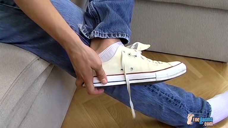 Bisexual Sonny needs to drain the cum from his uncut cock, all over his feet!