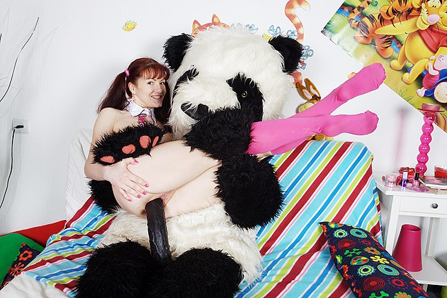 Unpacking a box hot sexy girl finds her favorite toy. It’s not big or too exciting but it definitely looks like it brought her a lot of unforgettable moments at sex toy parties… Unable to overcome temptation the girl starts masturbating and, just imagine, how shocked she gets when a huge panda toy comes to life and squeezes her! Very unexpected but so desired! The further action is a mix of sex toys porn and huge dildo action followed by deep pussy penetrations and lavish facial.