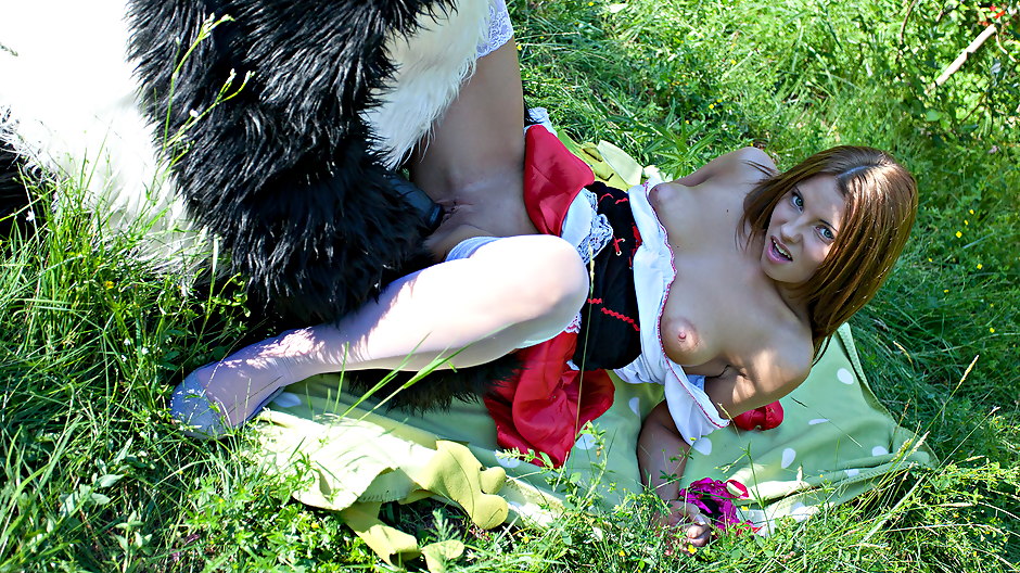This is a story of a red riding hood, but it differs from the one you were told as a child :) The sexy teenage red riding hood was walking alone in the forest, and guess whom she met! No, it wasn't a wolf, it was a huge and horny panda bear! He wasn't gonna eat her, all he wanted was a fun fuck. And as soon as the girl saw panda's strapon dildo, she decided to go for an xxx sex play with this handsome bear. After all, she loved kinky sex toys so much! This fairy tale has a happy ending as panda ...