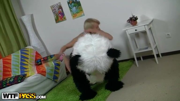 What would you do if your favorite panda teddy bear turned out to be alive and damn horny? Probably you'd be scared at first, like this pretty blonde teenager. But then she realized that it offered so many thrilling possibilities... In fact, she's always wanted to have sex with big toys. And there's nothing bigger than panda's shiny black strapon cock! Besides, the combination of fun and sex is truly irresistible. Watch an exciting sex play that ended up as real dirty sex. Oh, and there's a cool cumshot in the end!