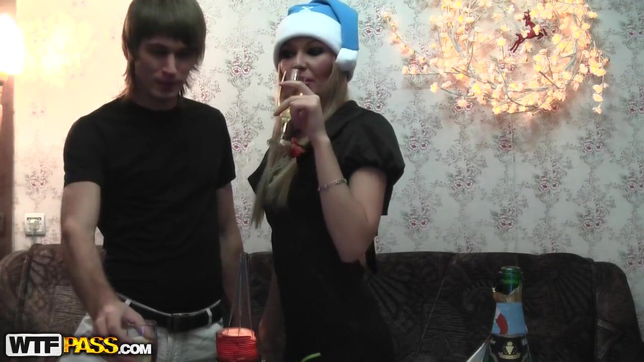 Merry Christmas to everybody! The holiday spirit is everywhere in the city and my hot girlfriend seems to have prepared a good surprise for me. I am not mistaken and watch my GF in the sexy outfit approaching me and taking my cock in hands and skillfully petting it until I start moaning from real pleasure! My amateur monster dick is throbbing and it very quickly jumps into Eva’s widely opened amateur pussy and moves furiously inside. Huh! After the strong orgasm it is high time to have the festive supper!