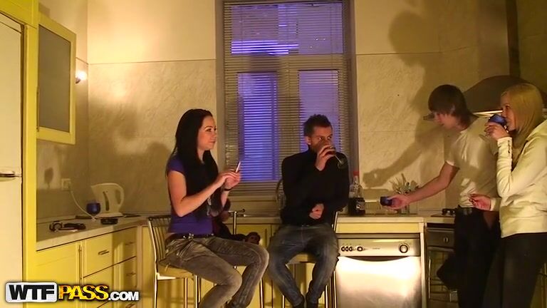 We are a hot amateur couple, Ilya and Nastya. We started recording this amateur sex video for you and today is the first day of our cash for sex tape action. We are at our friends’ place having a small party with Eva and Alex. We are drinking wine and talking about nothing. When our friends go to the bathroom we already feel somewhat horny and turned on so having lost the clothes off we enjoy the hot couple fucking right on the kitchen table covering it with loads of love juices at the end.