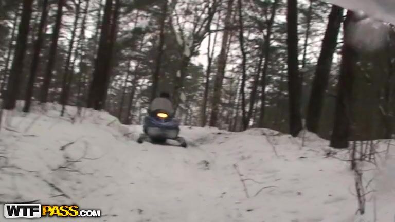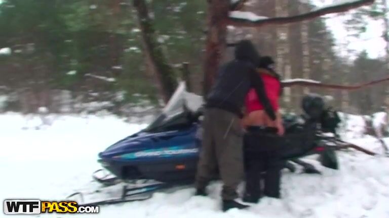 We both like extreme. I and my GF never mind getting some new and really dangerous experience. Today we are going to ride the snowmobiles. The weather is wonderful – frosty and snowy and the forest looks beautiful with trees all covered with snow. I feel my hot girlfriend’s body behind my back, her hands wrapping me around and my biggest amateur dick starts growing even bigger and harder. I stop the snowmobile and bend my naughty GF over the tree. I slide her pants down and stick my stuff deeply inside the amateur pussy! That was a great hot couple fucking in the snow!