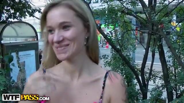 It was my last day in Prague, and naturally I was looking for some hot babe to have extreme sex with. It didn't even take long, I saw a charming blonde waiting for a tram and felt that she was the one to make my day. Her name was Lenka, she was gonna become a businesswoman, but today she became the star of my sexy public porn video. At first she was cold and not very talkative, but you know me, I can charm any girl I want! Soon we were talking and laughing, and in mere minutes after that ...