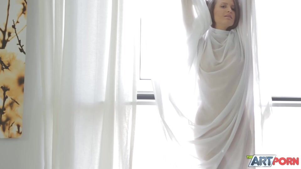 Busty cutie caresses her pussy with naughty fingers until she reaches orgasm.