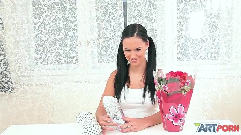The girl in this super hot high quality high definition porn got a dildo as a present from her secret admirer...