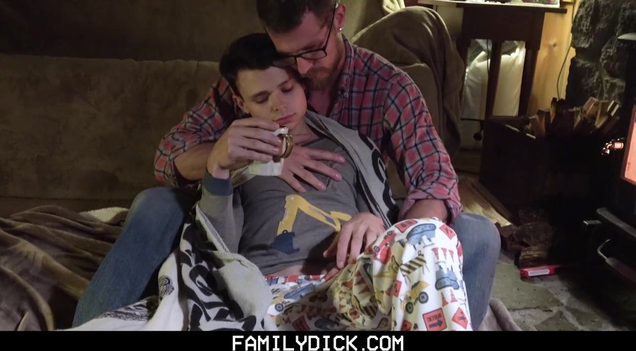 Getting in from a cold, wet night, this sexy daddy gets his smooth, horny step son all excited by running his hands all over him. This cuddly couple can’t resist feeling each other up, leading to a passionate night of fucking by the fire.