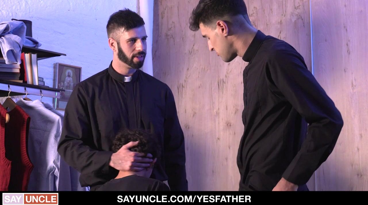 Time and time again, young Carter Fore has failed to get a hold of his sexual urges. Father Romeo and Father Gallo take a hands-on approach to helping the boy, fucking his aching asshole while feeding him a mouthful of thick cock.