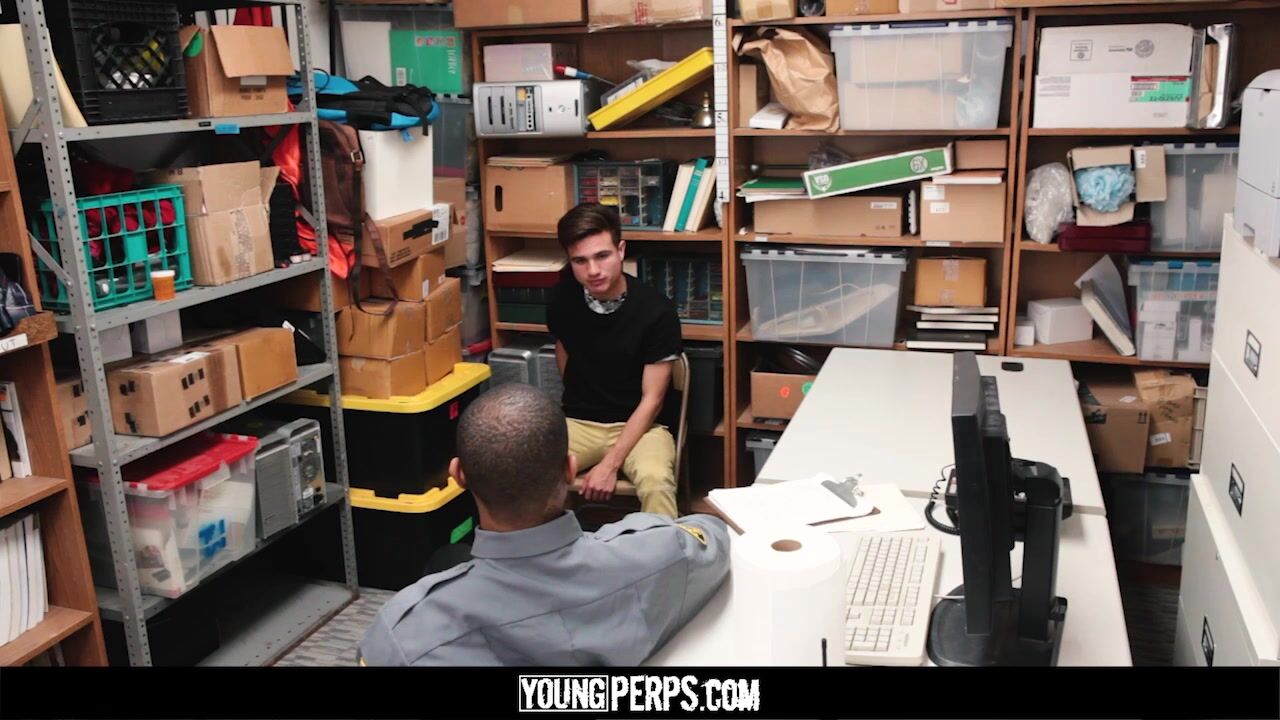 In this video, this kid thought he could outsmart the sales staff by sneaking several items under his clothes. Unfortunately, the cameras caught everything and he was forced to go head to head with the Loss Prevention Officer. Even though what he took amounted to almost nothing, the fear of the cops was enough to make him beg for leniency. The officer was happy to let the kid go, but not until he’d had his fun with him. The straight boy’s sticky fingers find themselves wrapped around his cock before it goes up his tight, virgin boy ass!
