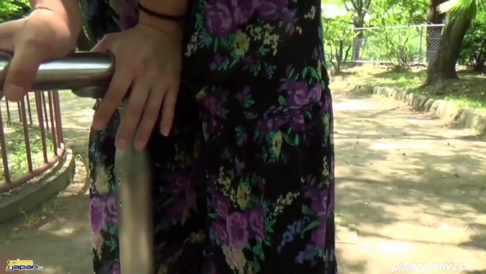 A well-built Japanese woman in a flowery dress finds her way through an empty park. She comes upon a shiny chrome railing and thrills at its sexy piss-abilities. She straddles the cool metal and presses it into her horny slit. The shoulder of her lacy blouse falls and gives us a good look at her lush boobies.nnHer bare smooth snatch slides effortlessly along the chrome and she moans a little. The curved end fits so satisfyingly into her juicy gash, and she gyrates against it. Holding and humping, she pees on the pipe with uncontrolled lust. Wet and happy, our hot honey steps away and smiles for the camera.