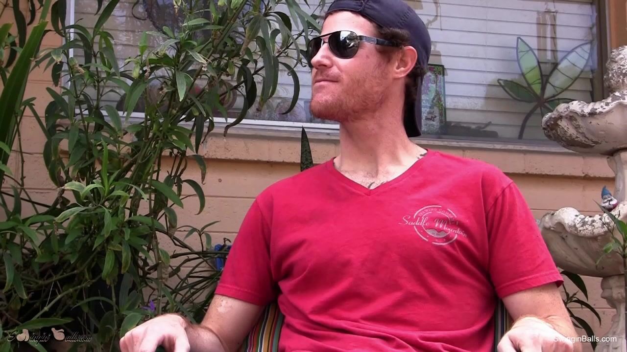 Josh is a fuzzy stud with a smattering of black tattoos emblazoned across his chest. Enjoying a lazy day on the patio, he drops his black boxer briefs to show off an impressive dick and hairy crotch and legs. He slicks a palmful of lube across his hands and reaches down to jack his cock. From a low camera angle we can look up at his balls bobbing with every stroke and the smooth contours that frame his furry ass crack. As he speeds up his nutsack swings seductively.nnHe raises an arm to take in the musky scent of his hairy pits. Turned on by his own man scent, he picks up speed and intensity and sits down to concentrate on his growing need to cum. Joshua leans back and focuses his jerking on the thick mushroom head. The shot turns to slo-mo as a load bubbles up from his nuts, works its way up the shaft and finally sprays down his fist. He squeezes the final drops out of the slit and rubs the juicy goo into his chestnut pubes.