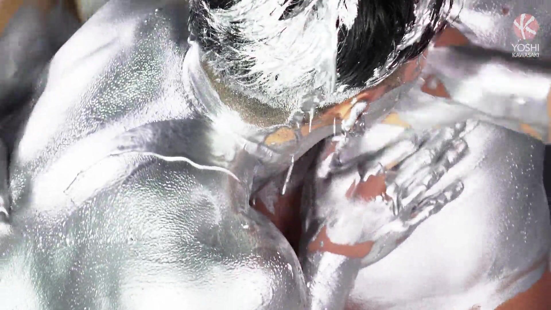 Daddy Shusaku and his boy Yoshi get covered in silver gunge. Their bodies take on its gleaming colour as they become metallic creatures. They feel their way around each others' silvery bodies and fuck each other. Shusaku fists his boy with his big chunky hand. Yoshi screams in pleasure as though he'd never taken such a big meaty fist before. Daddy Shusaku uses Yoshi's sloppy pussy to cum. Yoshi pushes Shusaku's metallic load out of his red rosebud.