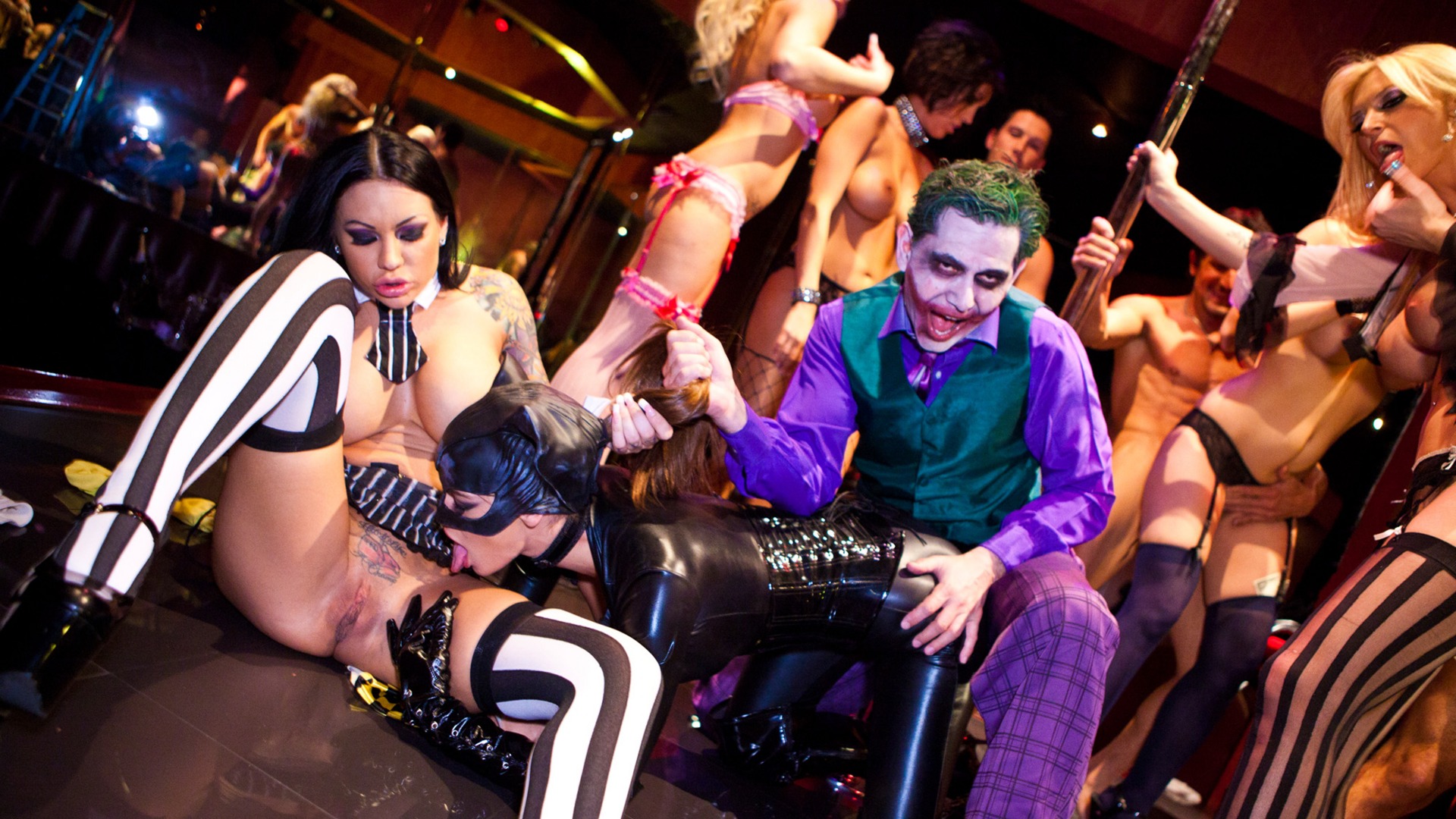 Brooke Banner, Brooke Haven, Dylan Ryder, Jazy Berlin, Mason Moore and Natalie Norton find themselves in the right place at the right time for an orgy. Madelyn Marie as BatChick is trying to get to the bottom of a wild sex spree that is taking Gothard City by storm and she doesn't care how many pussies she has to lick or cocks she has to fuck to find the Jokester.