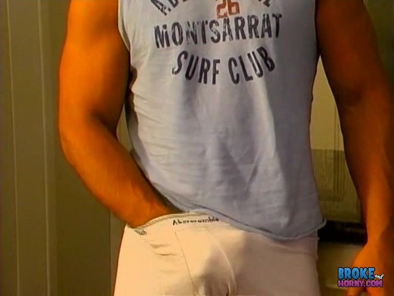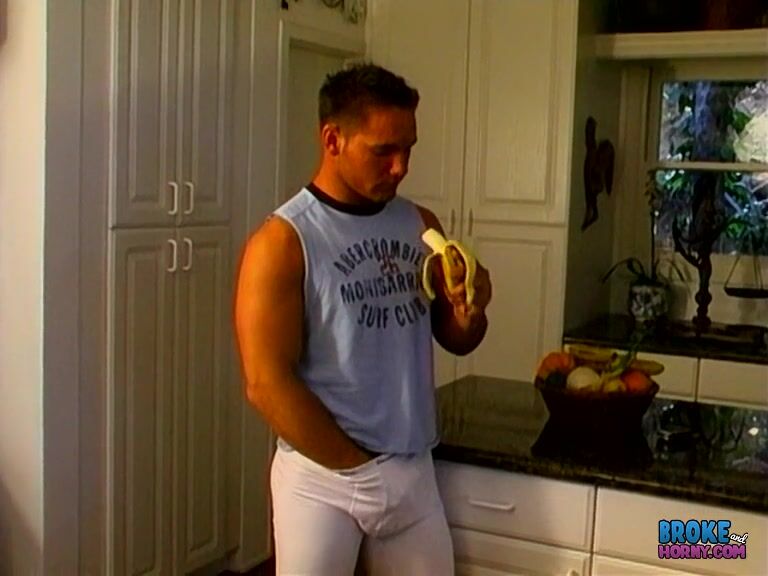 All alone on a Saturday night, tanned muscle stud Brad Kemp is super horny and has nowhere to go. Oh well, may as well sit down on the kitchen floor and jerk off, right" Sure, why not. This guy is all-American beefcake for sure!