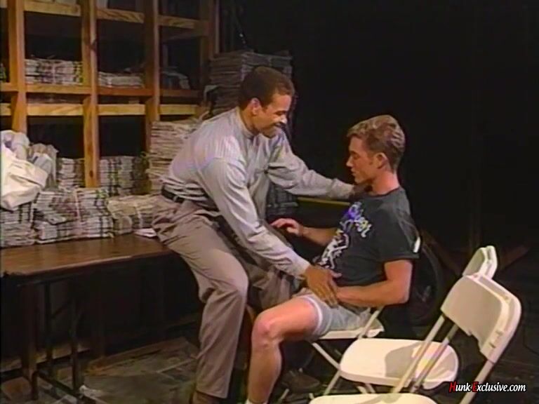 Chris Dano and Jeff Austin are discussing things in the backroom of a store when things take a different turn. A black stud and a blond bottom sometimes can't keep their hands off of one another and that would certainly be the case with these two hotties!