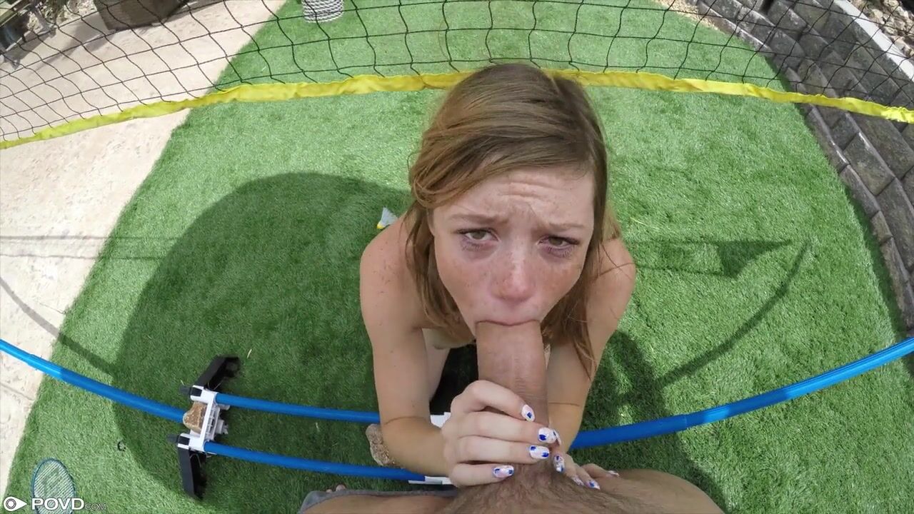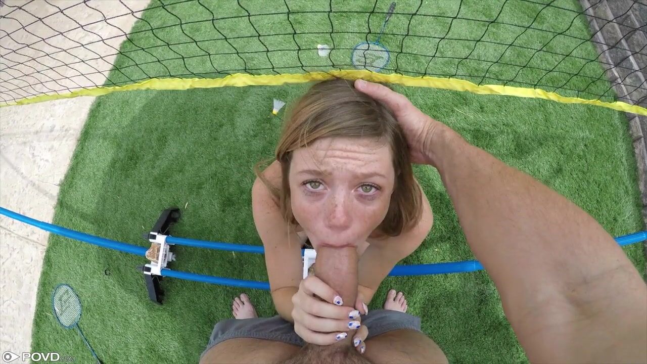 Mia Collins plays some badminton outside before coming in to get fucked and facialed by a big dick.