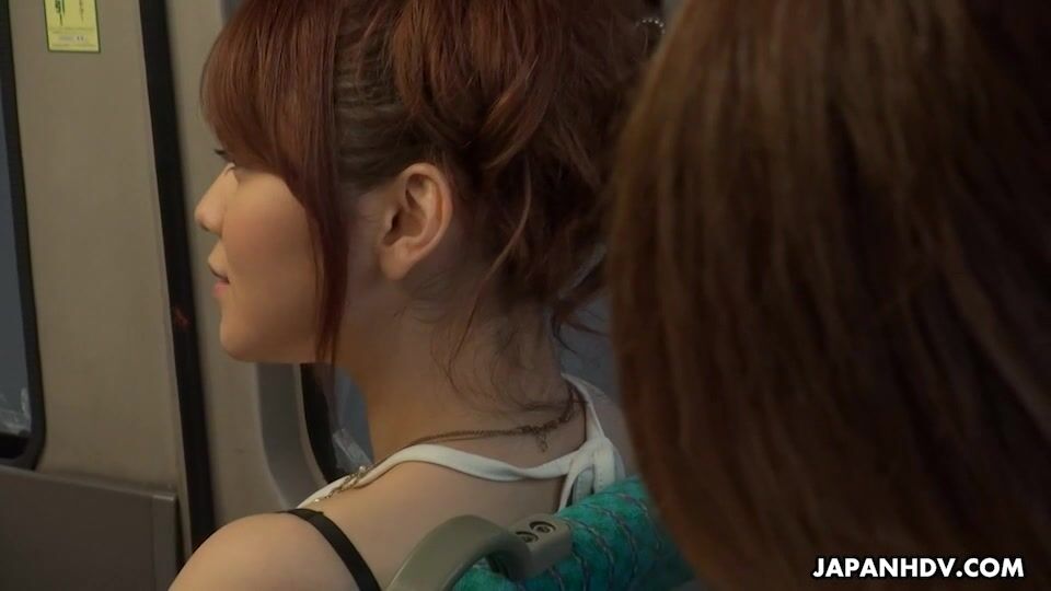 Mari Motoyama sits next to her first victim and gets his attention and starts to kiss him. She of course looks so sexy in her short skirt and her spaghetti string top. Who could resist such a hot babe like her with her cute sweet innocent face.