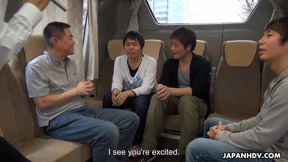 Hikaru Ayami, Mitsuka Koizumi, Mitsuki and Chiharu are presented to these guys. Just as soon as the car starts, the four nude babes begin to suck the men's cocks, same time. The only question is who will receive cum in her fish taco first?