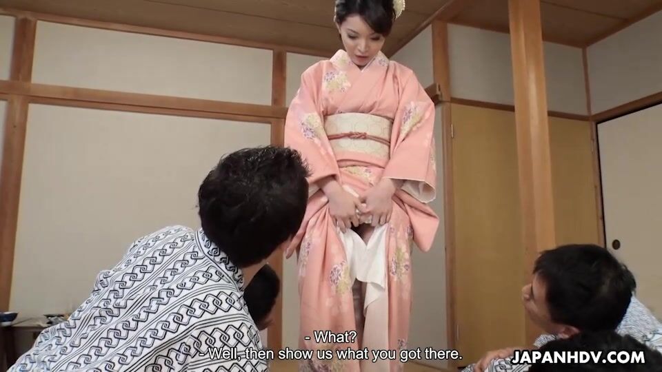 Hikaru Kirishima is in her kimono as the hostess of a office party orgy