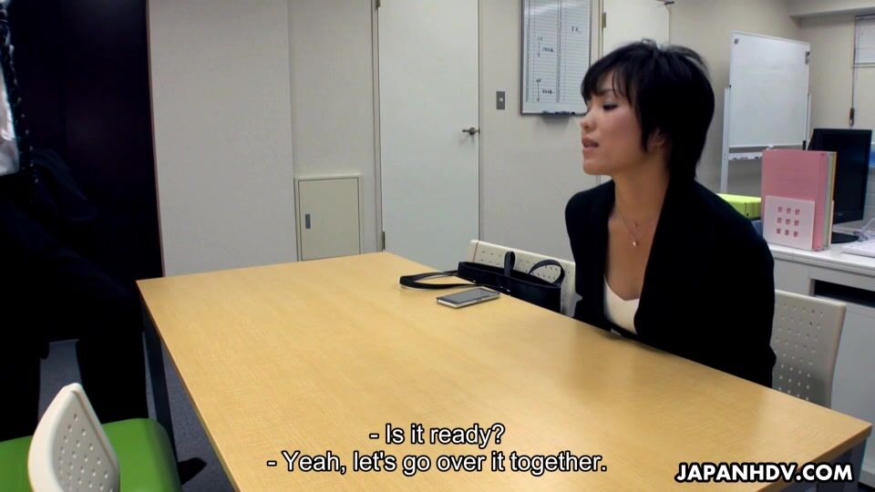 It seems that before the coworker as has arrived Hasumi was masturbating and had her small vibrator shoved up her pussy when he surprised her. They both then spend the rest of the afternoon fucking right there on the office tables and chairs.