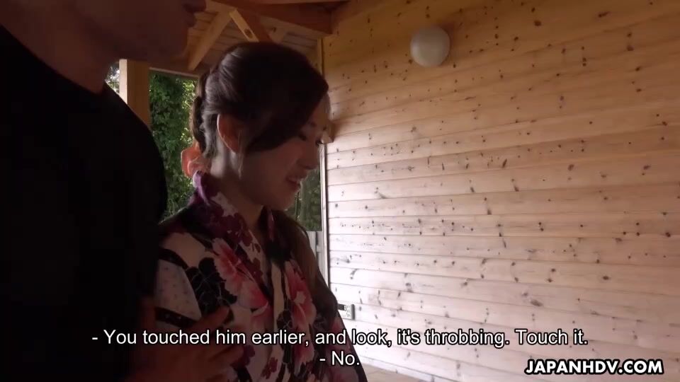 Maki Horiguchi is dressed in a hot kimono, posing all slutty and intriguing in front of the man who's jerking his dick. The man must fuck her really hard because she truly deserves a proper fuck and a proper creampie in the end.