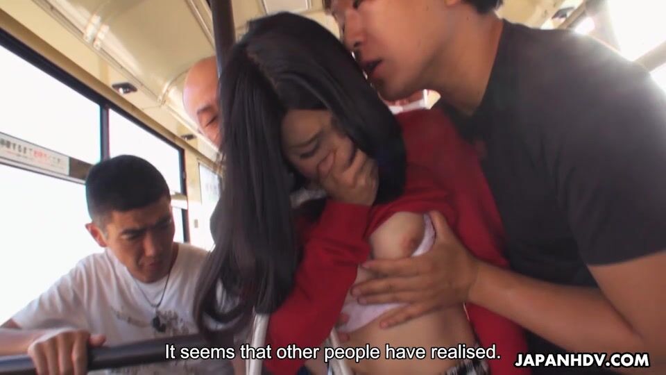 Aimi Nagano takes her daily bus trip. The man behind her back starts touching her ass. Although she takes his hand away, the guy gets more daring. Still, the other men from the bus want to play too. They fuck Aimi in her mouth and pussy.