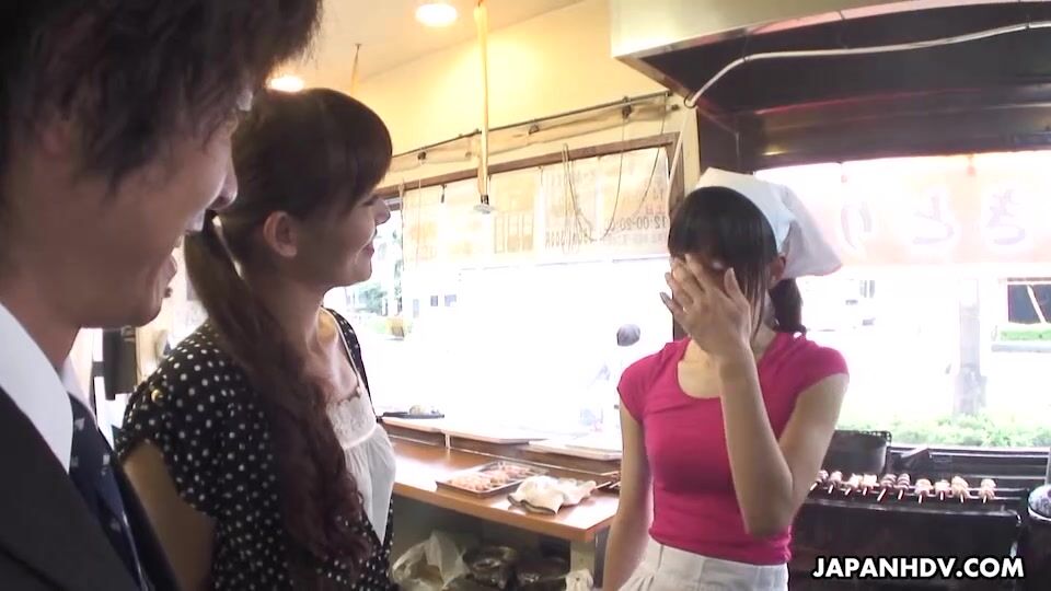 To be focused while working, pretty girl who started working in a barbecue place is supposed to be tested- her boss is going to be doing naughty things to her, while she will be working. Yummy Yakitori, Akubi Yumemi and Hitomi Kanou had a great day.
