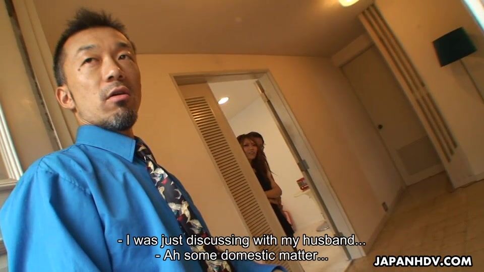 Eri Aihara is a really attractive Japanese porn slut. She wears some fine stockings and in this scene she gets used right in front of her husband!Some lucky dude drills her cunt with a dildo and uses her dick later to please this Asian hottie.