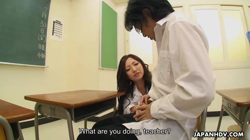 Stunning Japanese teacher Mayumi Takara caught her student while he was masturbating. She shows her body and gets drilled with lovely sex toys. Nasty teacher slut even takes a dildo up her tight asshole. Double penetration feels so fine!