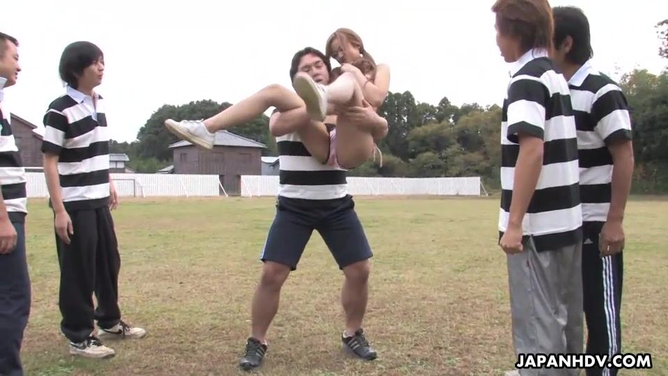 Sporty girl An Umemiya enjoys in joining the team during their soccer matches and loves getting her hands on one of their players and playing with his hard rod in front of the toilet and gets rammed by the whole team as well on the field during break
